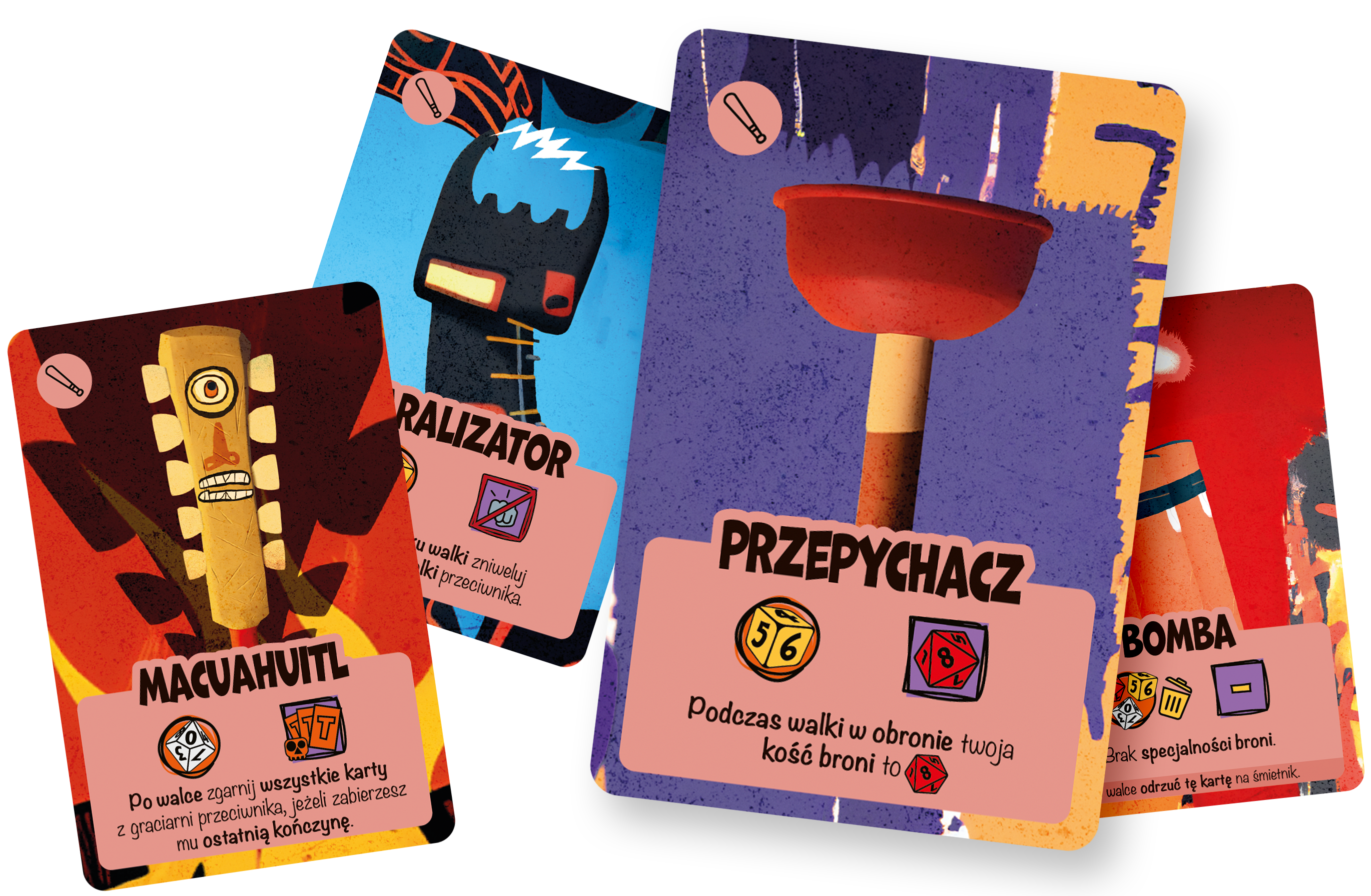 10 unikalnych kart specjalnych (tzw. „śmieci”), które poszerzają możliwości taktyczne i znacząco zwiększają interakcję między graczami.