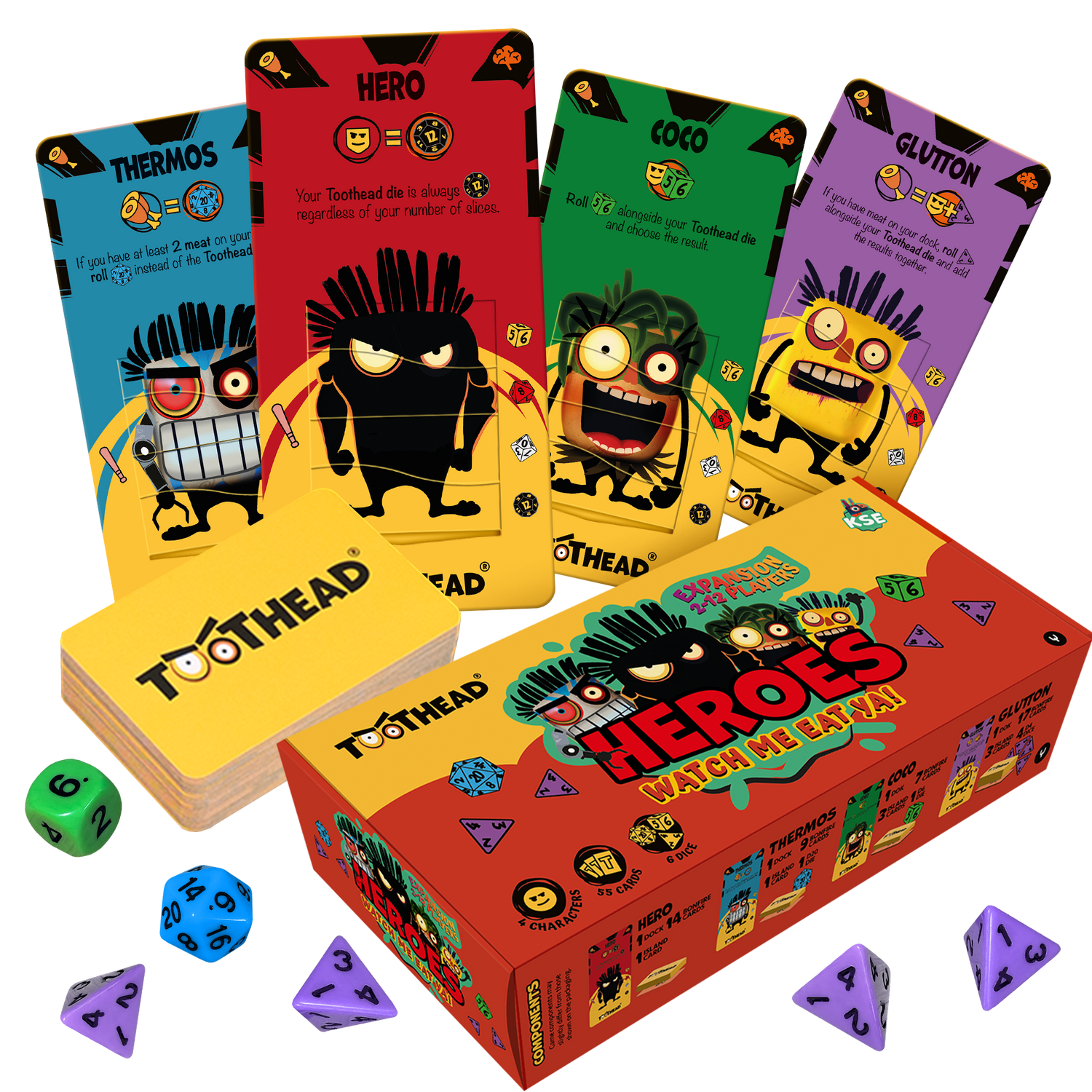 Dodatek zawiera 4 nowe postacie, 55 kart oraz 6 kości, a także umożliwia rozgrywkę dla od 2 do 12 graczy! Bohaterowie z dodatku Heroes mają unikalne zdolności oraz odwrócony przydział kości Tootheada — od K12 (przy 4 kończynach) do K6 (przy jednej kończynie).